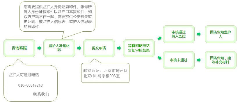 监护人可以登陆官方网站,下载对应表格,填写后传真给客服。